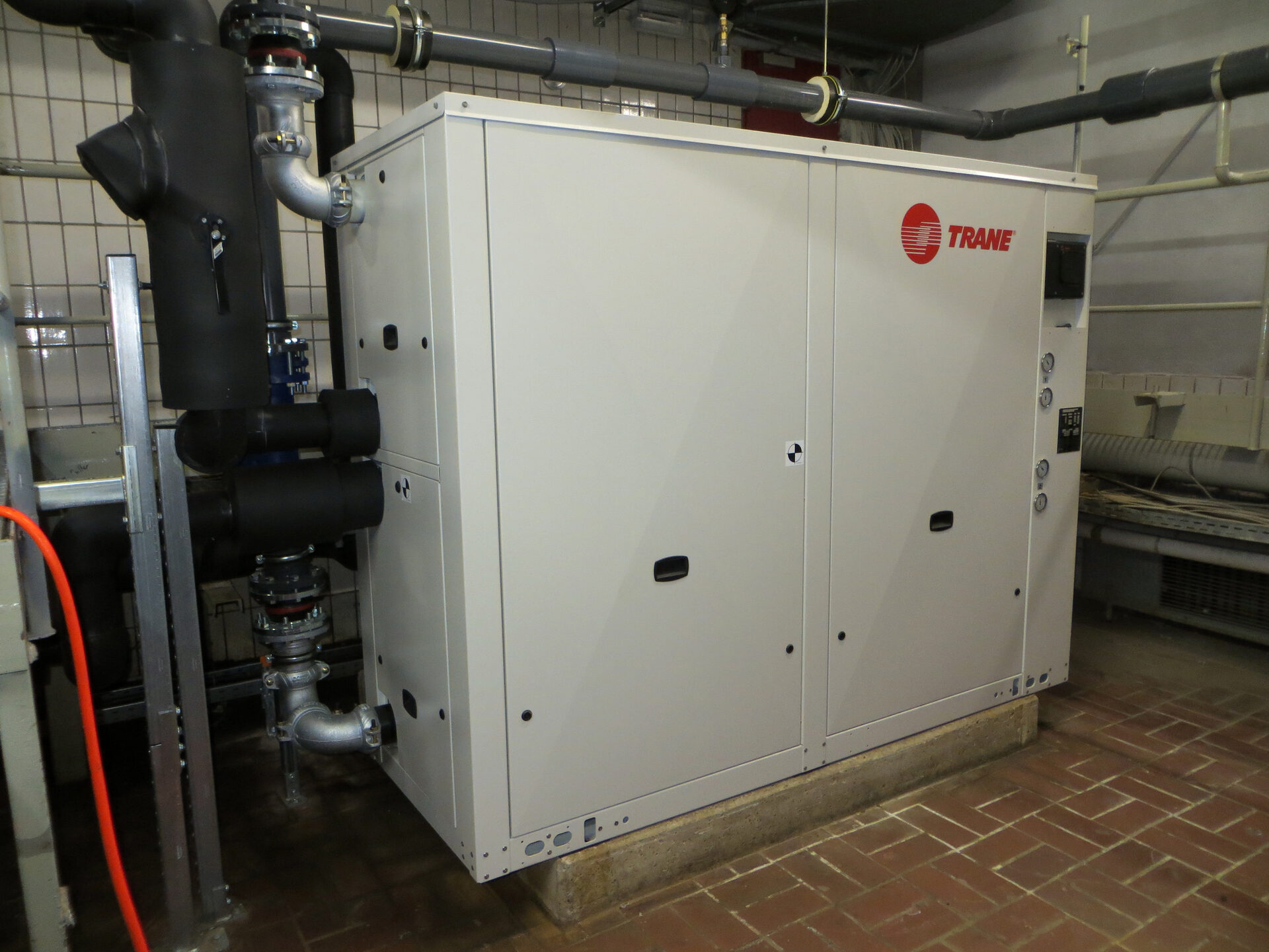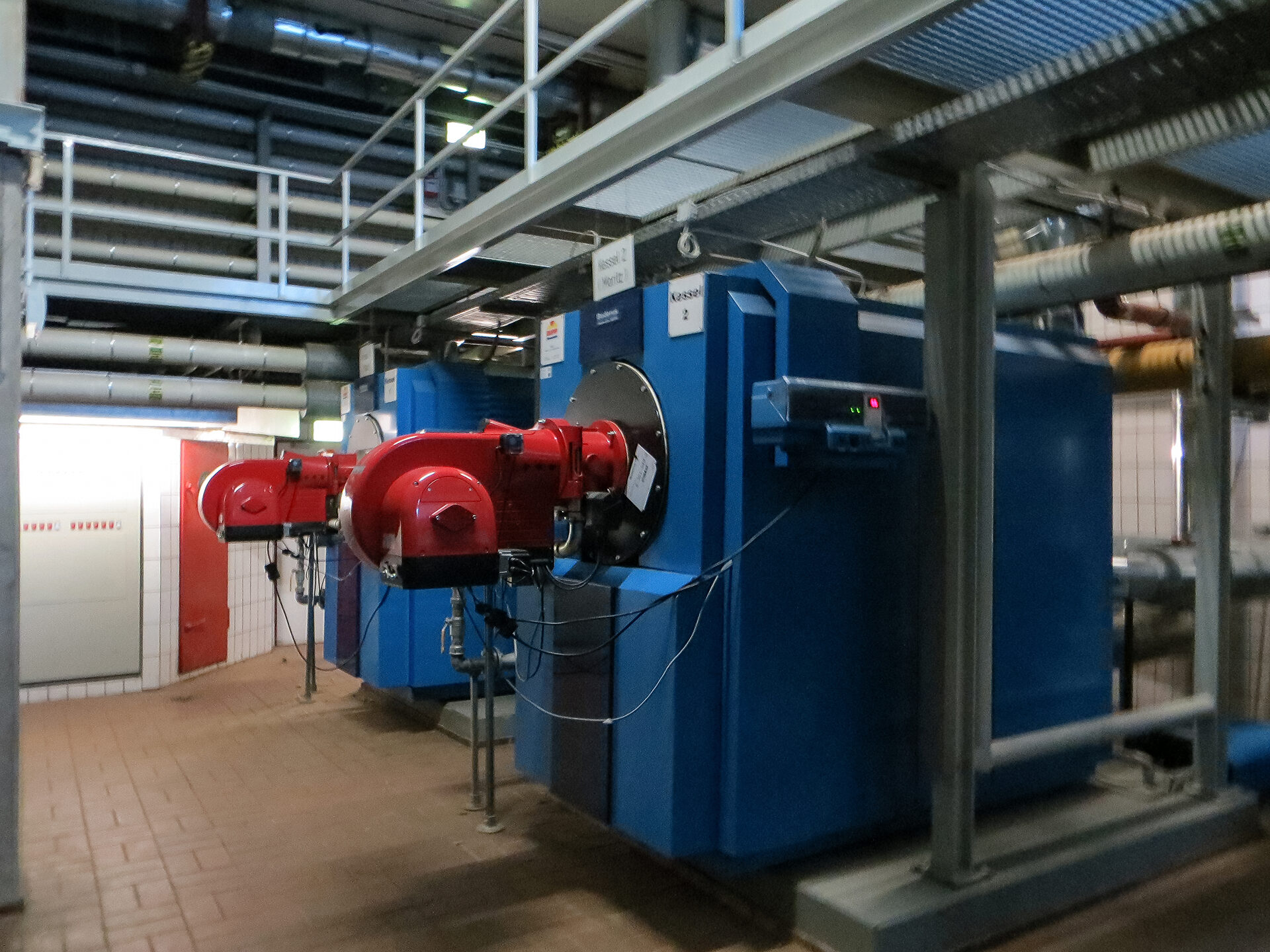 Der Schwerpunkt der Umsetzung lag bisher auf der energetischen Modernisierung des Kreishauses A + B. Die fast 40 Jahre alte Heizungsanlage wurde gegen eine moderne und energiesparende Gas-Brennwertheizung ersetzt sowie im gesamten Wärmeverteilsystem ein hydraulischer Abgleich durchgeführt. Die vorhandene Kältemaschine zur Kühlung von Kantinen- und Versammlungsräumen war veraltet und überdimensioniert, sodass auch diese nach Prüfung möglicher Varianten zur Kälteerzeugung unter Berücksichtigung der örtlichen Gegebenheiten und der energetischen Auswirkungen in 2014 eine moderne Kältemaschine mit angepasster Leistung eingebaut wurde.