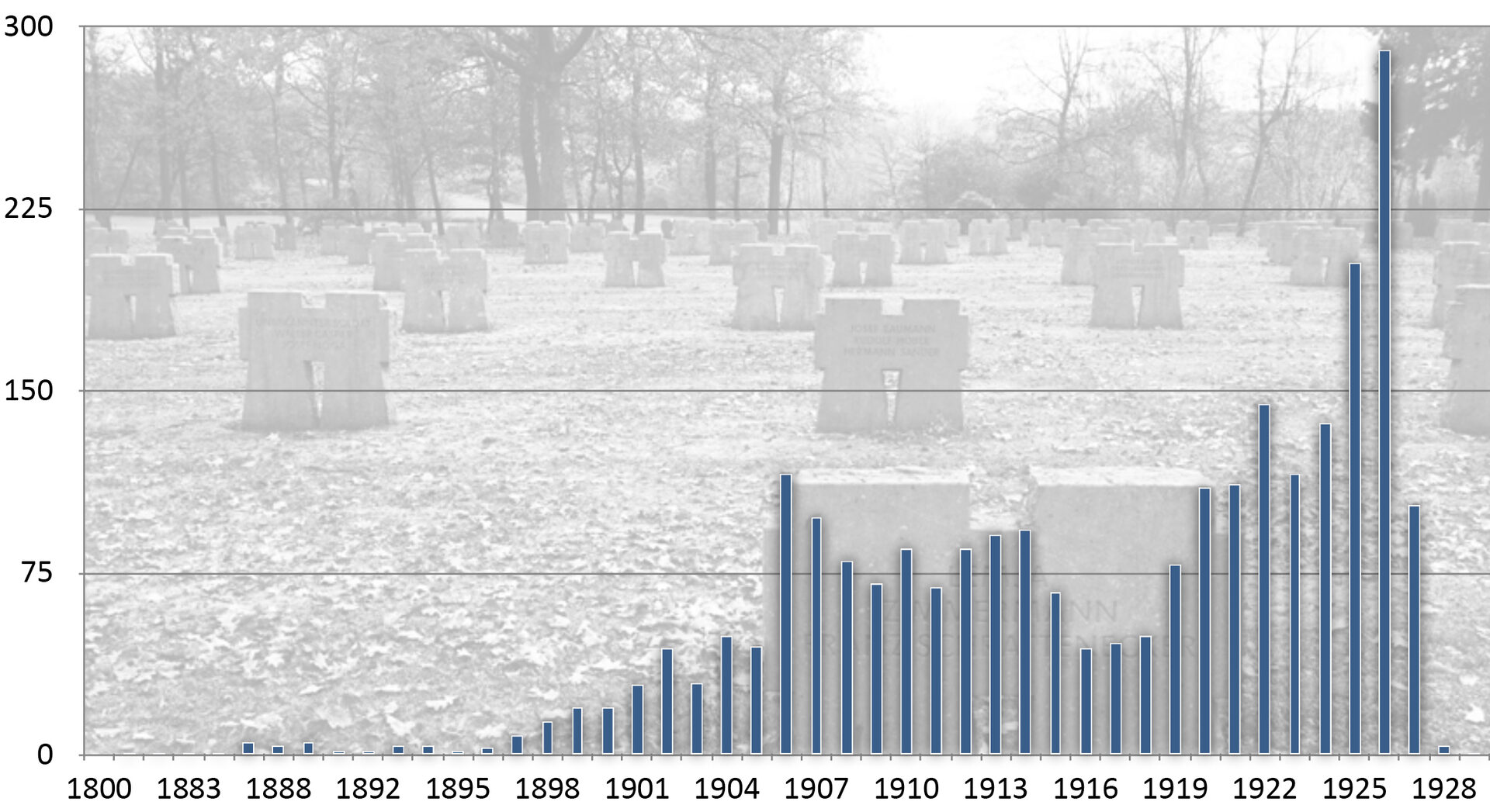 Geburtsjahrgänge der auf der Kriegsgräberstätte Hürtgen bestatteten Soldaten.