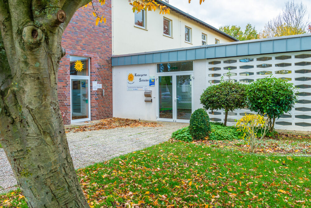 Die 3-gruppige Einrichtung Haus für Kinder liegt im ländlichen Ortsteil Schleiden, der zur Gemeinde Aldenhoven gehört. Das Einzugsgebiet der Einrichtung bezieht sich auf alle Ortsteile der Gemeinde Aldenhoven. Kinder aus der Ortschaft Schleiden werden vorrangig aufgenommen.