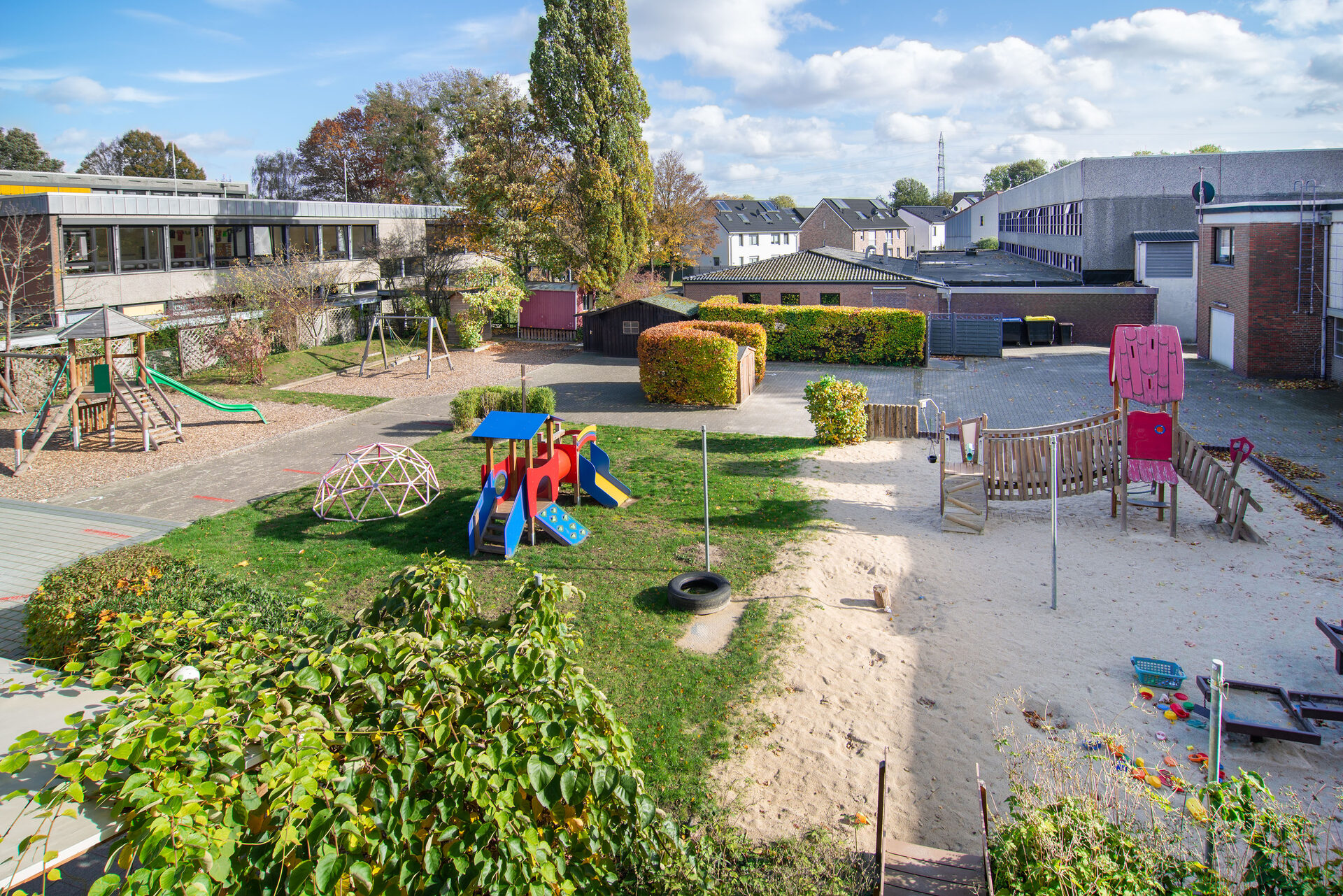 Die 5-gruppige Kindertageseinrichtung mit dem Schwerpunkt "Inklusion" und das Familienzentrum Aldenhoven "für Dich, für Mich, für ALLE" befindet sich in Aldenhoven-Ost etwas außerhalb des Ortskerns.