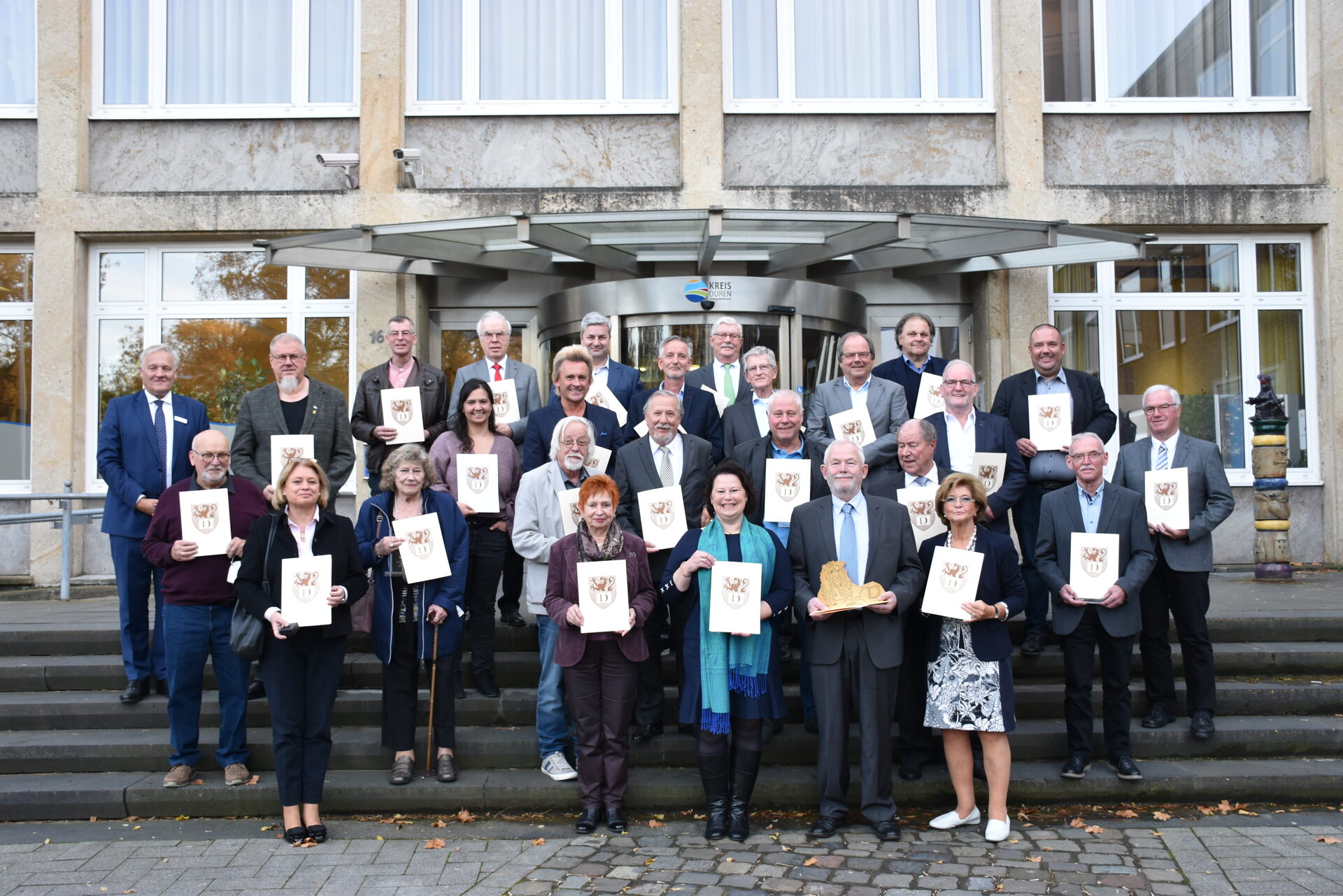 Ausgezeichnet und geehrt: Landrat Wolfgang Spelthahn (1.v.l.) dankte den ausgeschiedenen Kreistagsmitgliedern sowie den Jubilaren für ihre Arbeit.