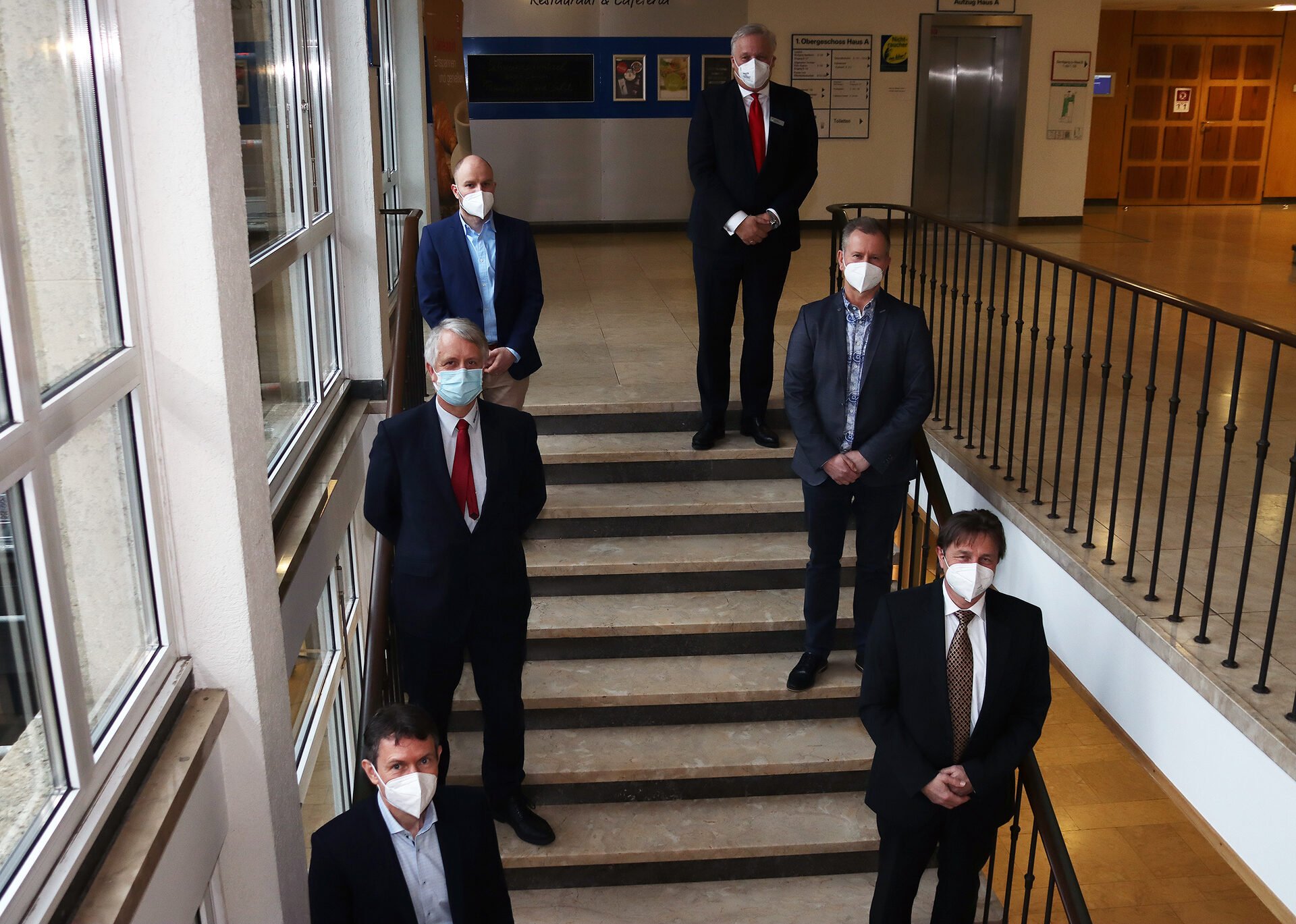 Landrat Wolfgang Spelthahn (hintere Reihe rechts) stellte mit den Vertretern der beteiligten Unternehmen das Projekt "Produktion von grünem Wasserstoff im Kreis Düren" vor.
