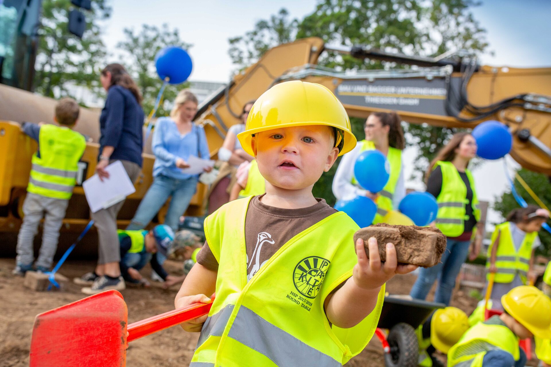 Die Kita ist auf dem besten Weg, eine Bewegungskita zu werden. Unterstützung gibt es hierbei vom Kreuzauer Turnverein sowie dem Kreissportbund. "Ich freue mich, dass wir heute gemeinsam den Baubeginn feiern können und viele Kinder in dieser tollen Umgebung Spaß haben werden", sagte Bürgermeister Ingo Eßer. Bevor die Schaufeln in den Boden gestochen wurden, haben die kleinen Bauarbeiter noch ein thematisch passendes Lied vom Baggerführer Willibald gesungen. Anschließend wurden noch Sonnenblumensamen an die Erwachsenen verteilt, die zu Hause die Blumen gedeihen lassen können, um sie dann gerne zur Eröffnung in voller Pracht als Einzugsgeschenk mitzubringen.