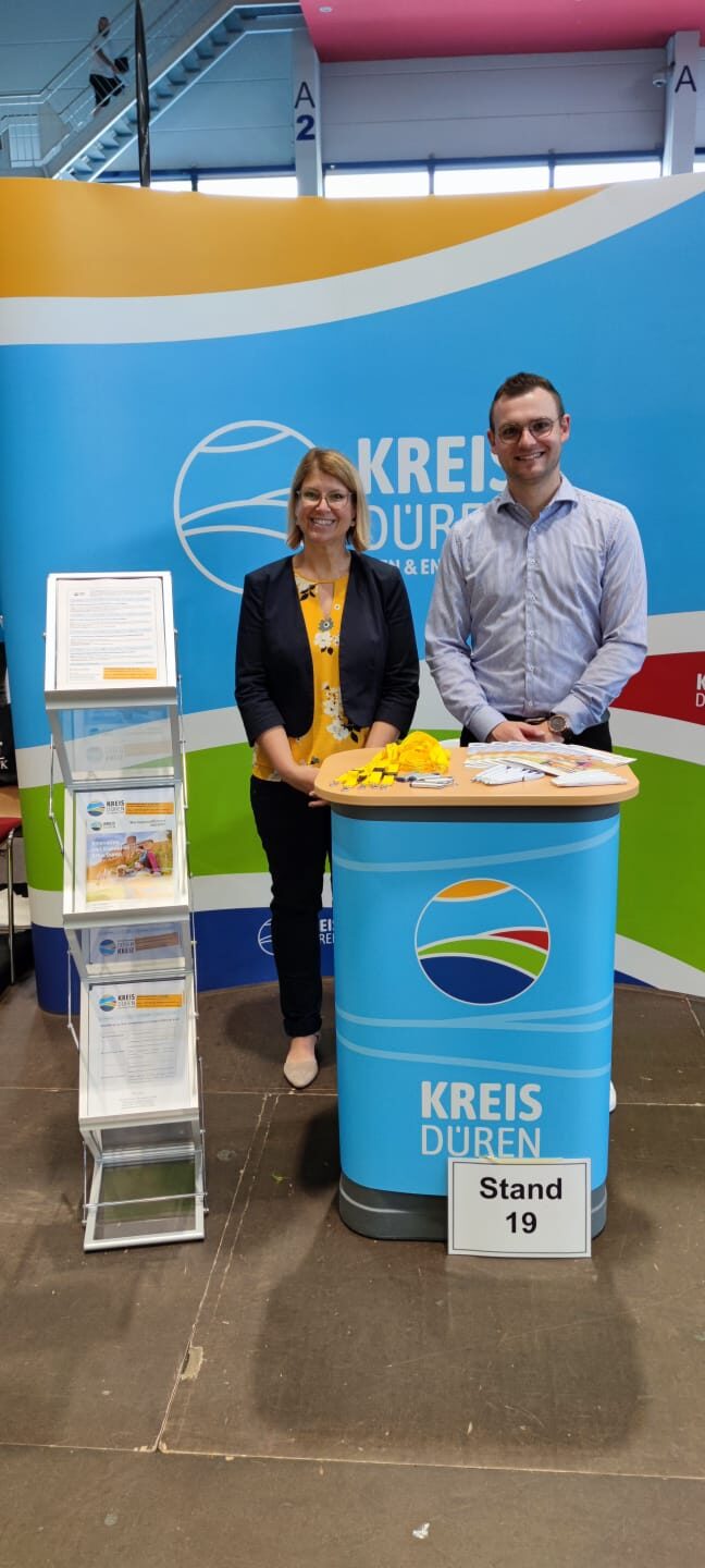Die Ausbildungsbörse fand von 10 bis 15 Uhr statt. Und damit möglichst viele Schüler daran teilnehmen konnten, stellte die Rurtalbus GmbH einen kostenfreien Shuttle-Service in Form eines Wasserstoffbusses vom Kaiserplatz Düren zum Veranstaltungsort zur Verfügung.