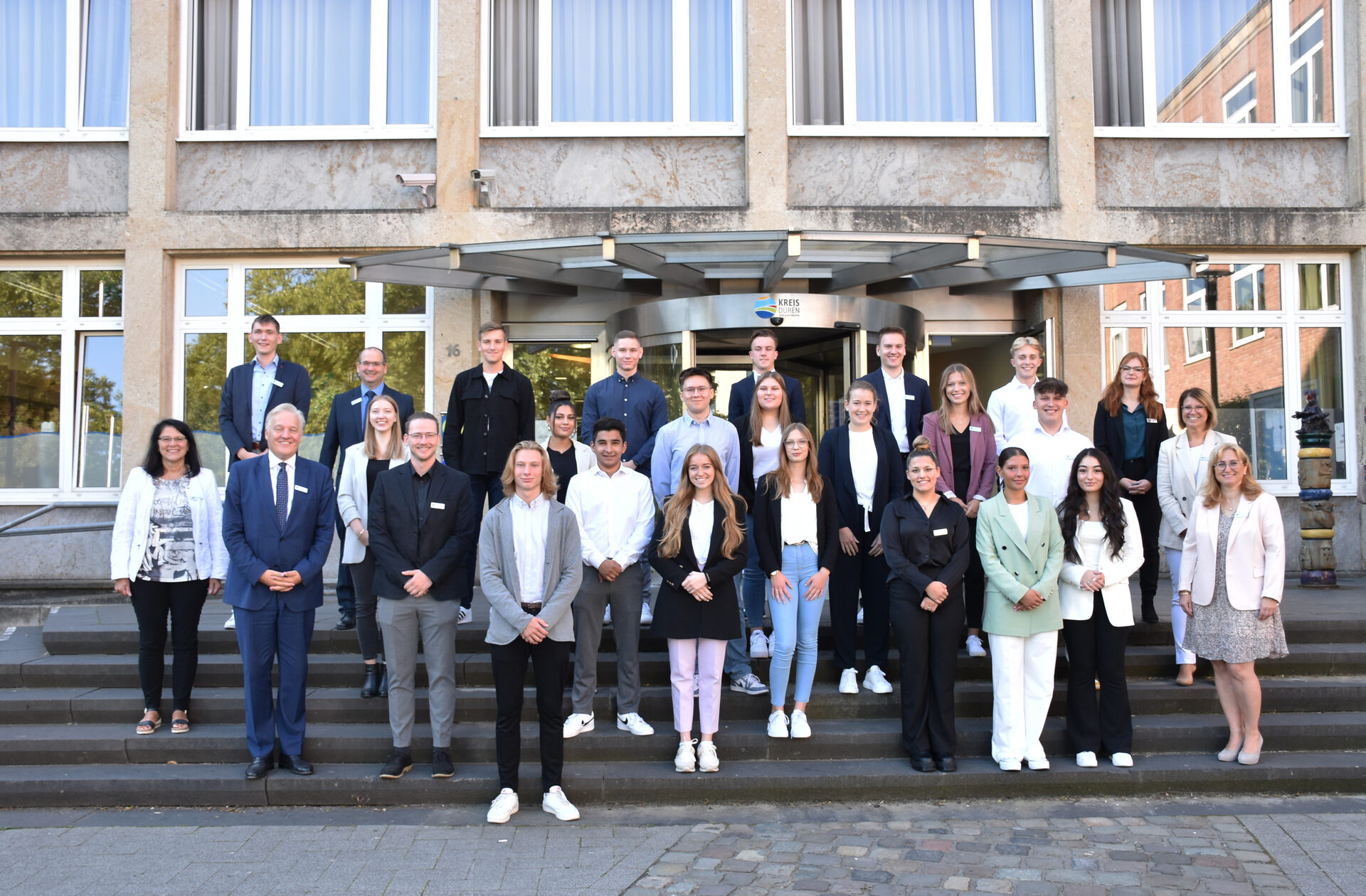 "Herzlich willkommen bei der Kreisverwaltung. Ich wünsche Ihnen einen guten Start und freue mich sehr, dass Sie ein Teil des Teams sind", sagt Landrat Wolfgang Spelthahn bei der Begrüßung der 20 neuen Nachwuchskräfte im Kreis Düren.