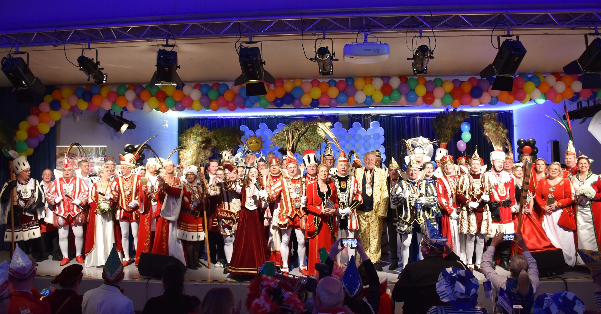 Nachdem Luisa Moeller der KG Boisdorfer Jecke mit einem strahlenden Lächeln ihre Pirouetten auf der Bühne gedreht hatte, wurden die Erwachsenentollitäten begrüßt. Vier Prinzessinnen, sechs Prinzen, sechs Prinzenpaare und 12 Dreigestirne erstrahlten in vollem Glanz. Für zusätzliche Karnevalsstimmung sorgten die Frauenband DURIA EXPRESS, die Showtanzgruppe LA DANZA des KV Vlattener Jonge und die Mundartband "Echte Fründe".