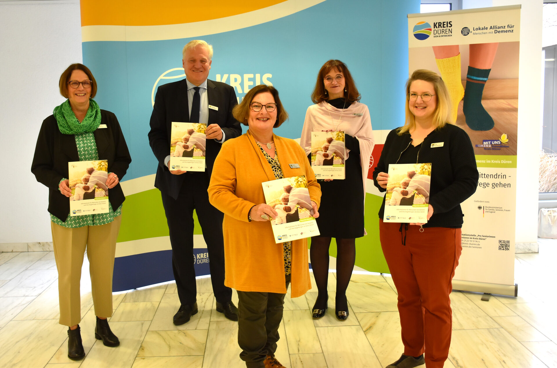 Der kostenlose "Wegweiser Demenz" wird in der Kreisverwaltung Düren (Bismarckstraße 16, 52351 Düren) und in der Geschäftsstelle Jülich des Kreises Düren (Düsseldorfer Str. 6, 52428 Jülich) ausgegeben. Insgesamt stehen 10.000 Exemplare für interessierte Personen und Organisationen zur Verfügung. Darüber hinaus ist er online unter www.kreis-dueren.de/senioren (Öffnet in einem neuen Tab) unter dem Reiter "Links und Downloads" verfügbar.