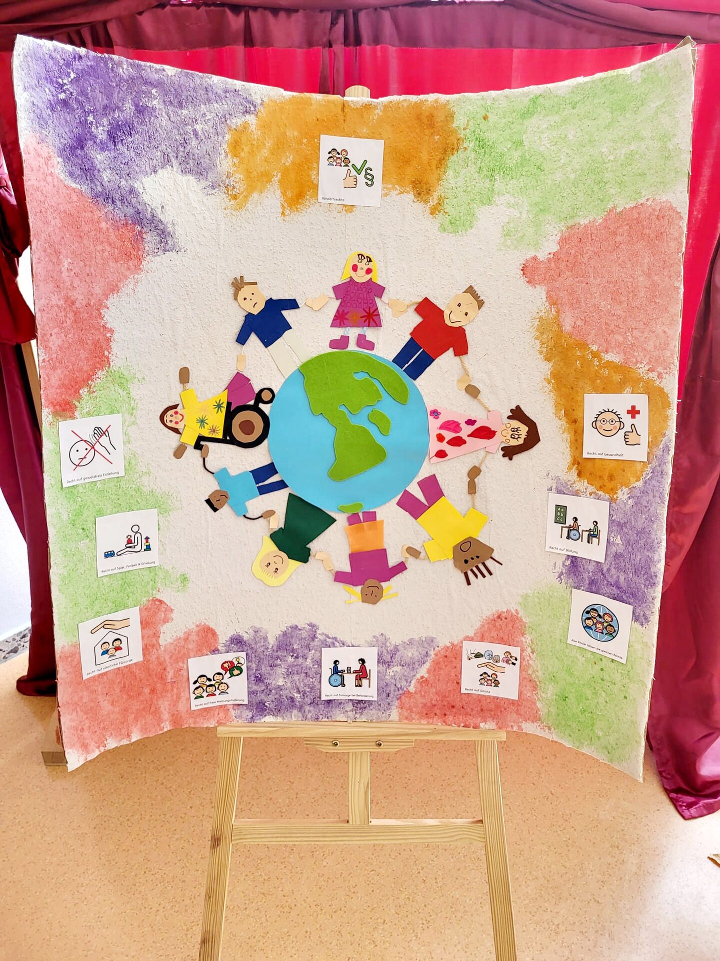 Die Kinder der Kita Purzelbaum haben anlässlich des Weltkindertages ein Plakat gebastelt.