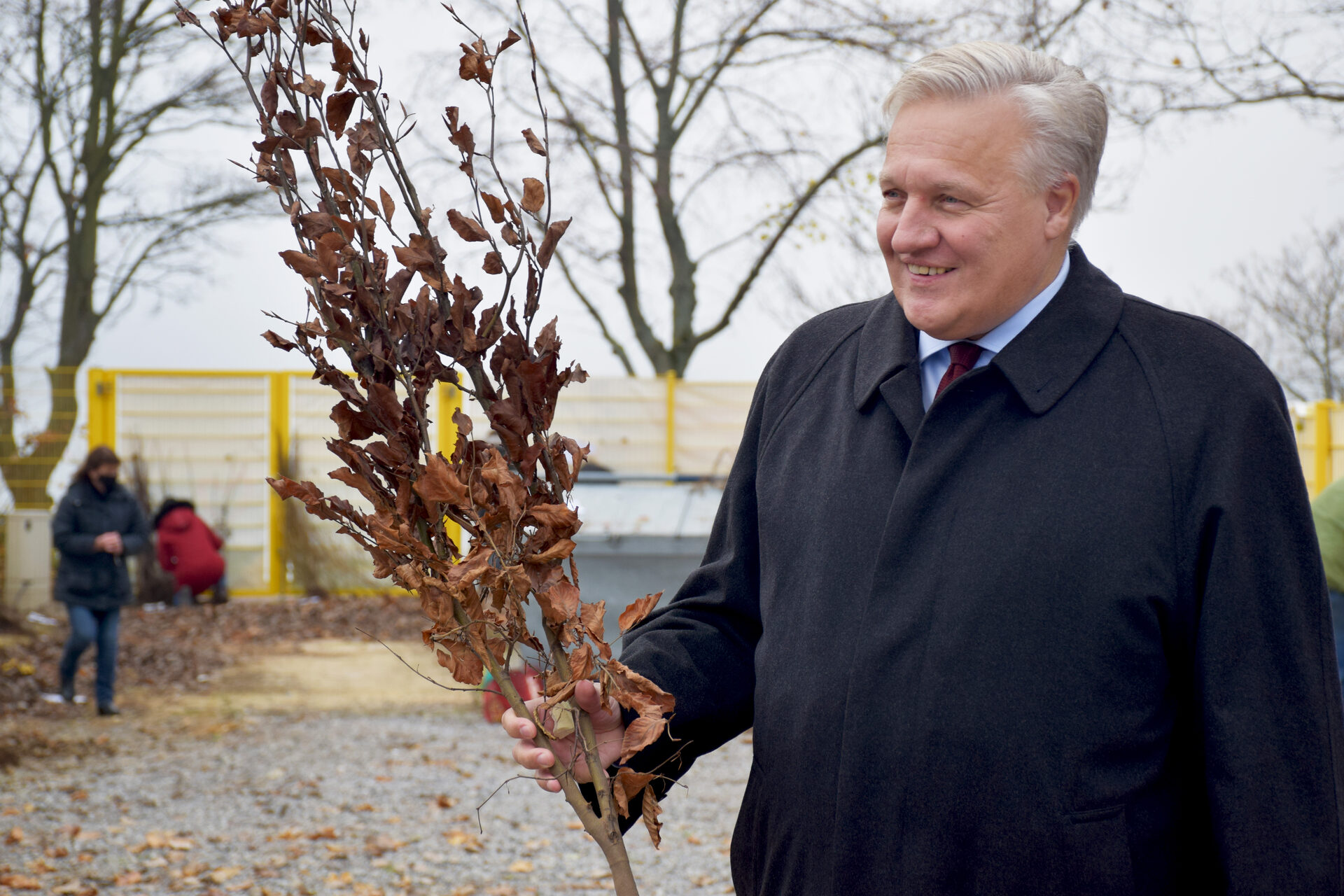 Gemeinsam mit Vertretern des Amtes für Kreisentwicklung und Wirtschaftsförderung hat er nun die kleinen Pflanzen ausgegeben, die in einigen Jahren zu prächtigen Laubbäumen heranwachsen und ihren Beitrag zum Klimaschutz leisten werden. Denn der Kreis Düren möchte ab 2035 klimaneutral sein. "Und jeder Baum bringt uns diesem Ziel einen Schritt näher", so Wolfgang Spelthahn weiter.