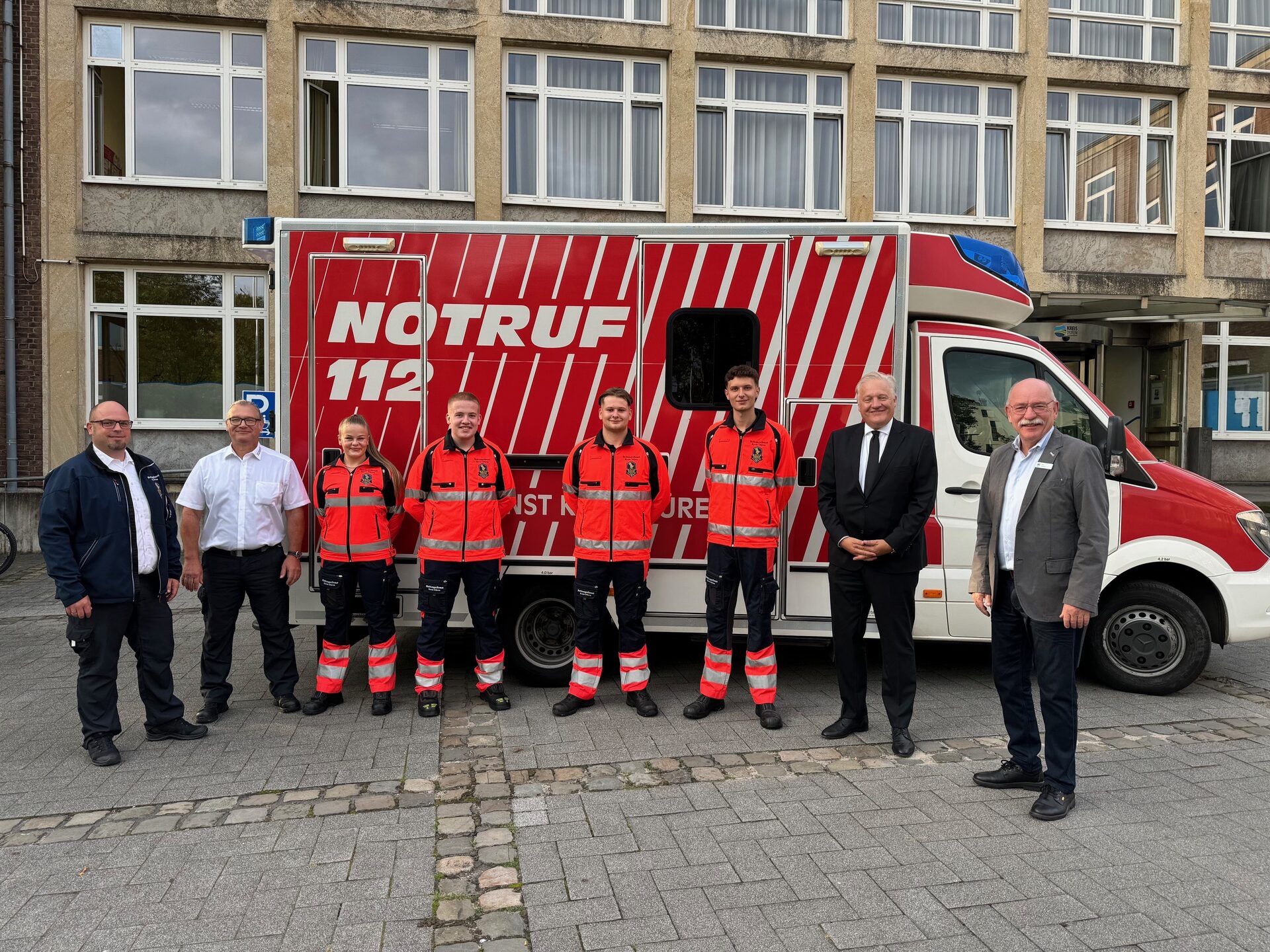 Landrat Wolfgang Spelthahn begrüßt vier neue Azubis beim Rettungsdienst Kreis Düren
