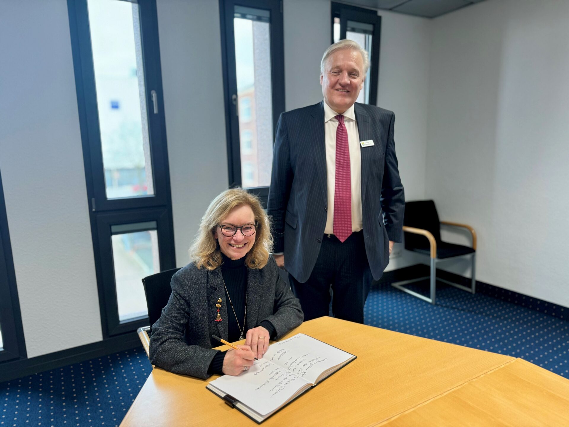 Prof. Dr. Margot Ruschitzka trägt sich ins Goldene Buch des Kreises Düren ein