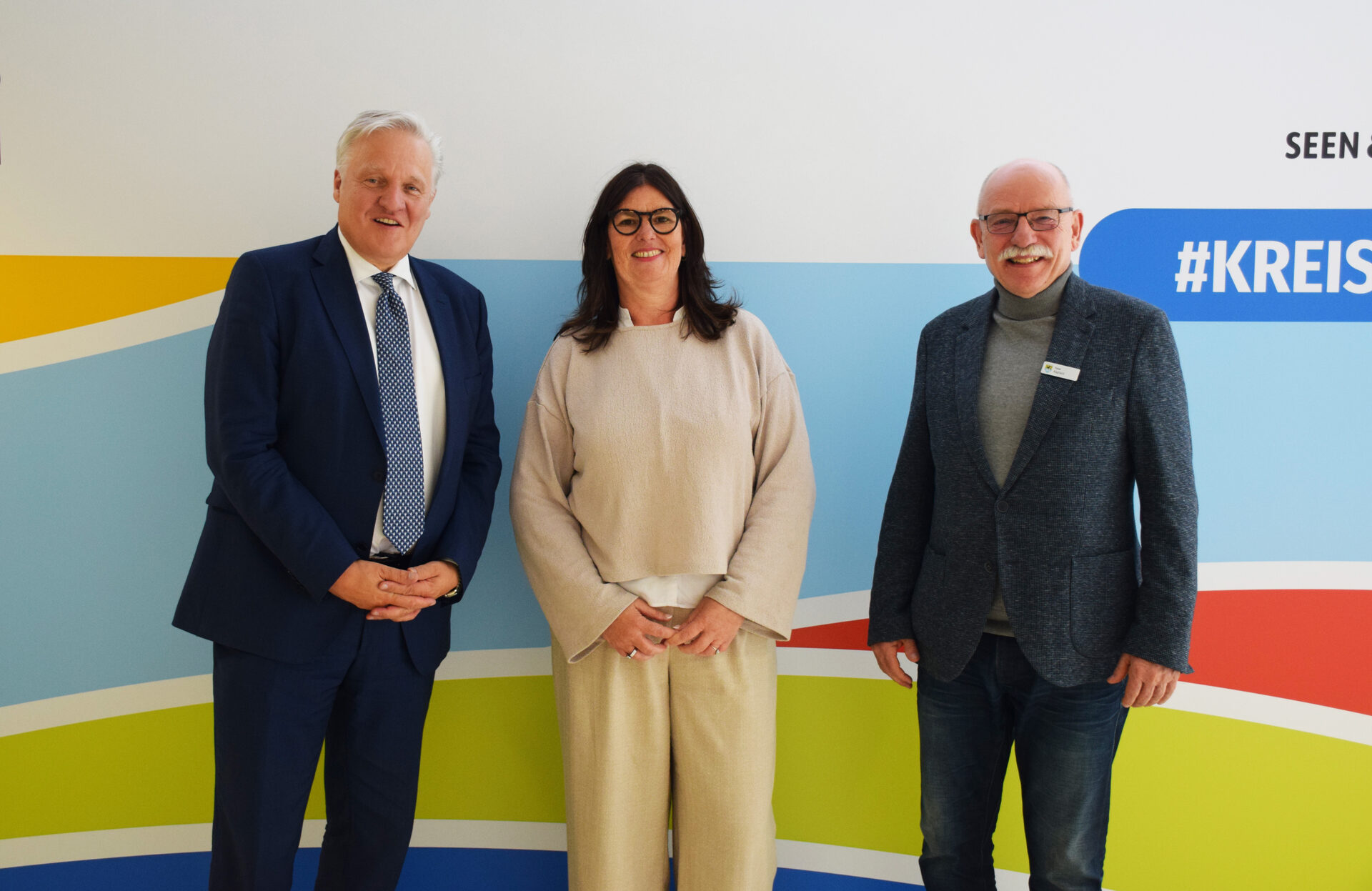 Landrat Wolfgang Spelthahn (l.) und Allgemeiner Vertreter Peter Kaptain stellen die zukünftige Leiterin des technischen Dezernats, Susanne Dettlaff, vor.