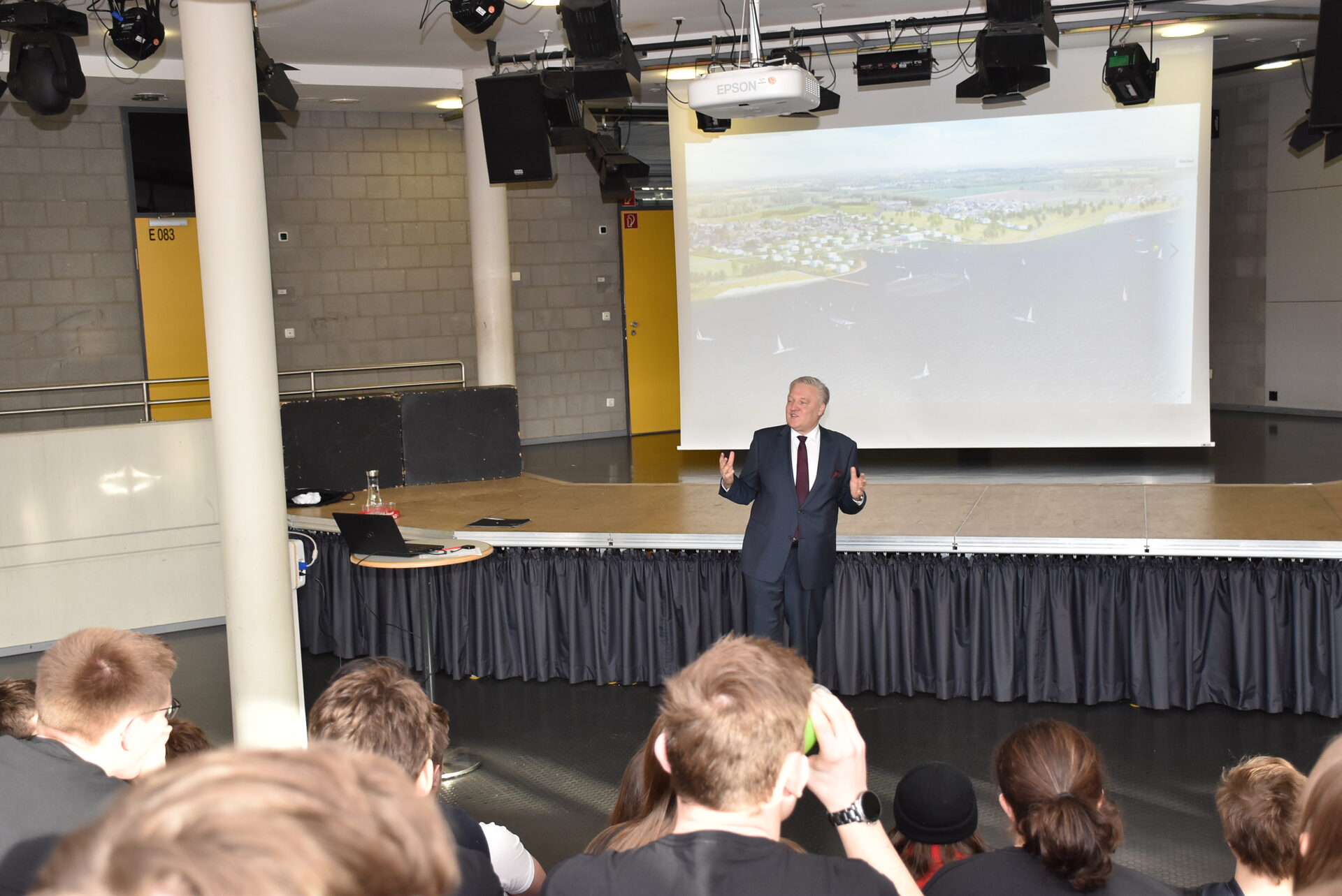 Landrat Wolfgang Spelthahn ist Pate des Gymnasiums Kreuzau. Das Gymnasium beschäftigt sich im Rahmen eines Projektkurses in der Q1 mit Fragestellungen aus dem Bereich des nachhaltigen und energieeffizienten Bauens. Die beiden Lehrer Karsten Engelmann und Alexander Schmitz unterstützen die Schülerinnen und Schüler bei ihrer Arbeit.