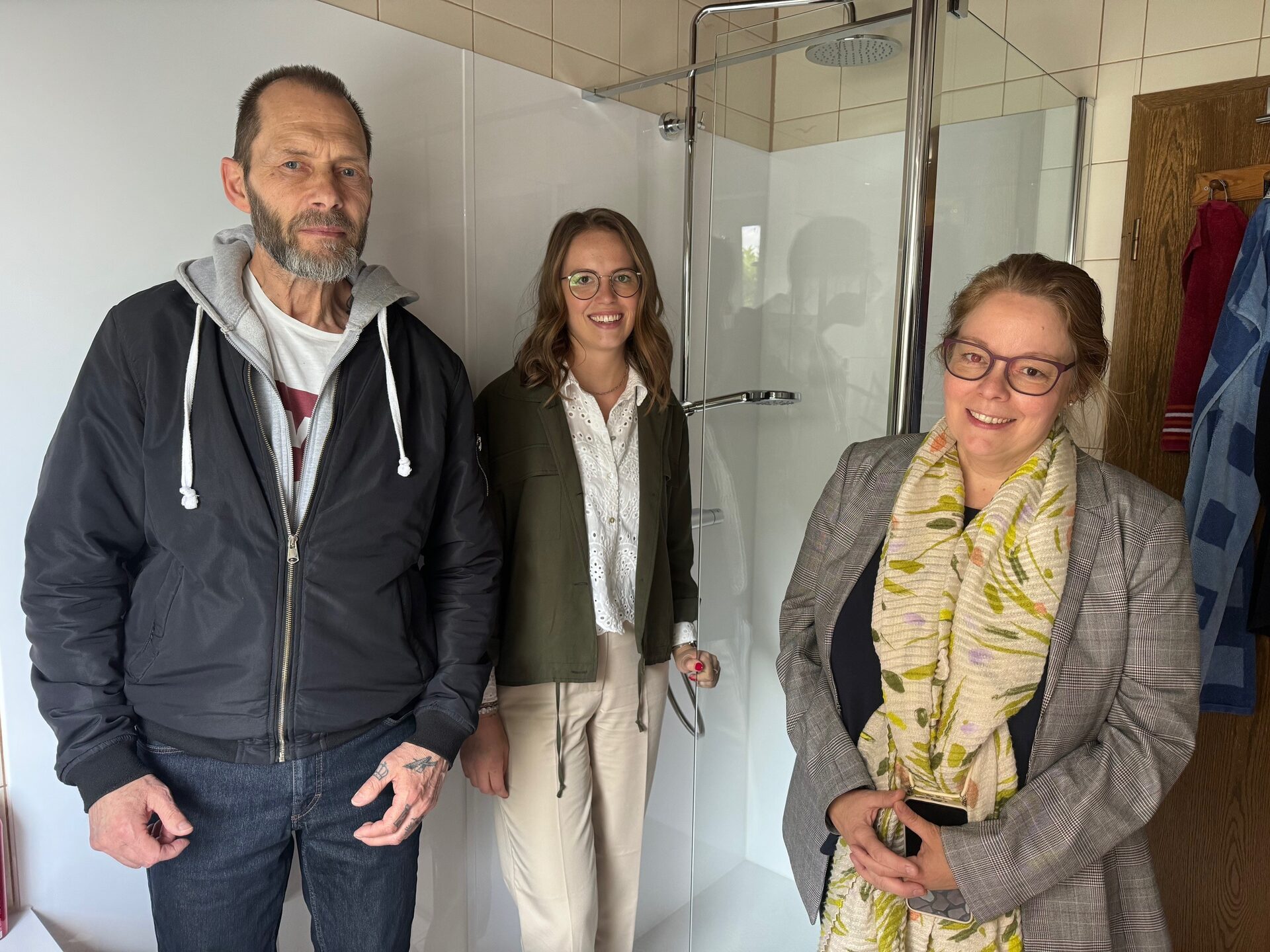 Die Veränderung bei Ingo Finsters Badezimmer fällt sofort ins Auge. Die Badewanne ist weg, jetzt steht dort eine geräumige, ebenerdige Dusche, deren Tür zu beiden Seiten aufgehen kann. „Es ist astrein vom Platz her, der Umbau ging sehr schnell und die Unterstützung der Wohnberatungsstelle ist eine enorme Hilfe für mich. Ich kann mich dort immer melden und das Know-How ist wirklich Gold wert”, sagt Ingo Finster. Auch die Vernetzung zu einer Parkinsongruppe konnte die Wohnberatungsstelle anstoßen, die ihm helfen soll, auch mental mit der Krankheit umzugehen. Die Wohnberatung informiert unabhängig und kostenlos über die Möglichkeiten, so lange wie möglich in der vertrauten Umgebung selbstständig wohnen zu bleiben. Es ist ein langjähriges Kooperationsprojekt zwischen dem Amt für Generationen, Demografie, Inklusion und Sozialplanung und dem Amt für Tiefbauangelegenheiten, Verkehrslenkung und Wohnungsbauförderung des Kreises Düren. Jedes Fachamt stellt eine Ansprechperson, die Hand in Hand arbeiten. „Man weiß nie, wie schnell sich das Leben entwickelt, daher ist es gut, vorbereitet zu sein”, sagt Ingo Finster.