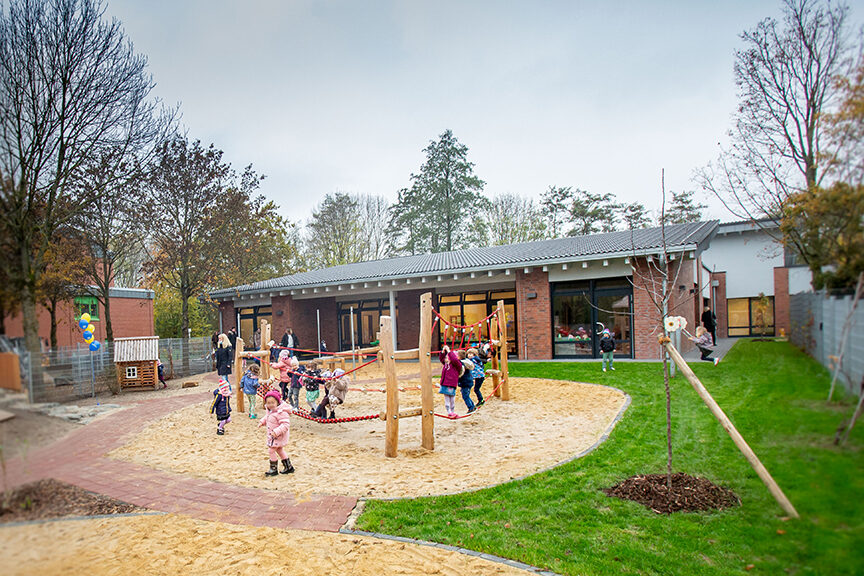 Seit Juli 2022 ist die Kita als Forscherkita zertifiziert. Die natürliche Neugier der Kinder nutzend, werden an ihre situativen Interessen angepasste Experimente spielerisch angeboten. Tägliche Bewegung an der frischen Luft gehört ebenfalls zum Programm. Im eigenen Außengelände, aber auch bei ausgedehnten Spaziergängen, gibt es verschiedene Möglichkeiten, die nähere Umgebung umfassend wahrzunehmen und interessante Projekte im Dorf zu begleiten. Die Kooperation mit einer Tagespflegeeinrichtung für Senioren bringt den Kindern einen generationsübergreifenden Alltag näher und ermöglicht Spiel- und Aktionstage für Jung und Alt.
