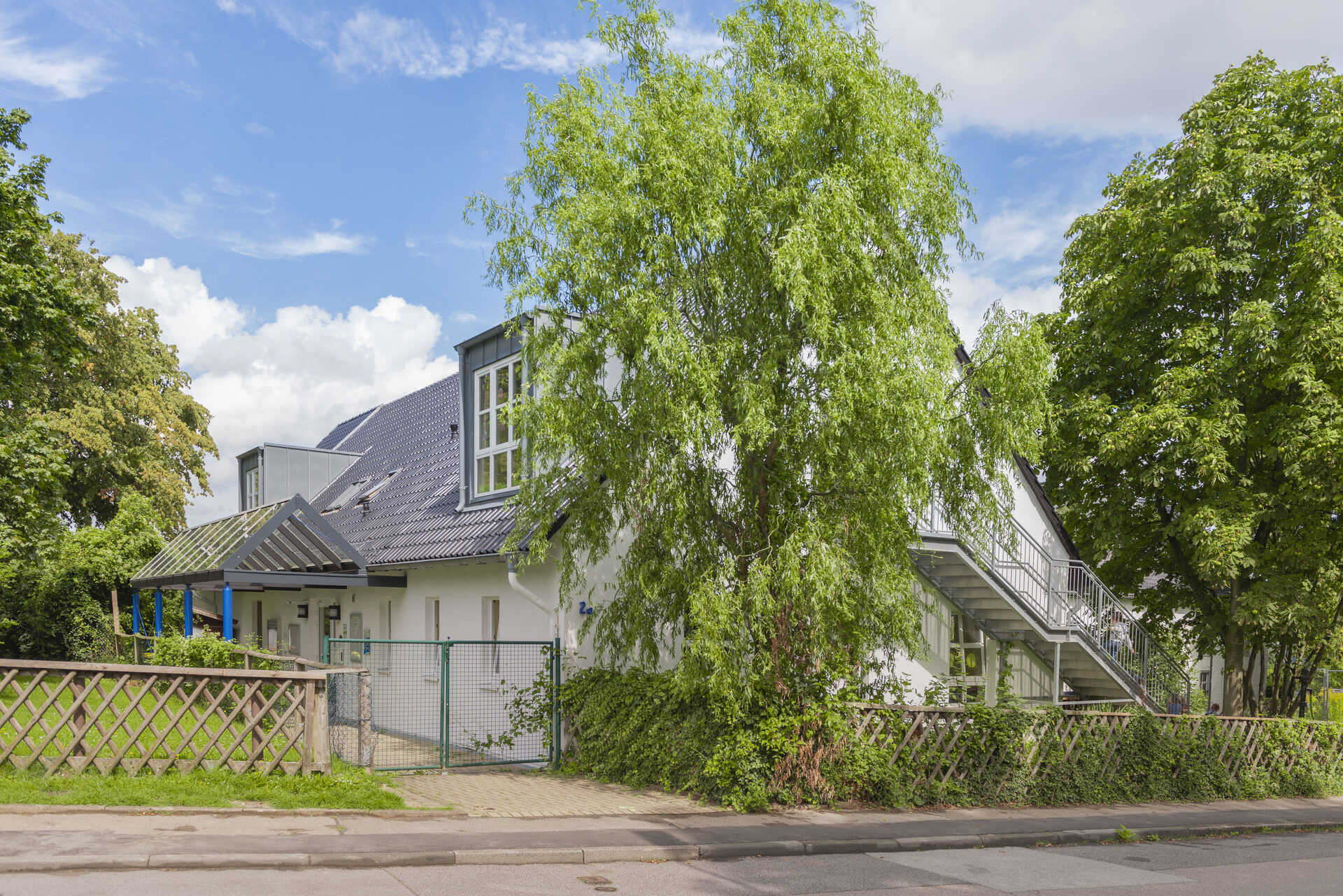 Unser großzügig angelegtes Außengelände lädt unsere Kinder zum Bewegen und entdecken ein. Wir haben bewusst darauf geachtet,dass vorrangig natürliche Materialien verwendet wurden. Neben viel Freifläche zum Laufen, Fahrrad fahren und Fußball spielen, laden auch Bäume und Sträucher zum Klettern und verstecken ein. Ebenso stehen den Kindern zwei Sandkästen, eine Matschecke, Materialien wie Schaufeln, Eimer, Bagger, Schubkarren usw. zur Verfügung. Weitere Angebote sind ein Weidentipi, eine Kriechröhre, ein Insektenhotel, eine Wasserturbine, eine Werkbank, eine Wetterstation, eine Baumbank, ein Feuchtbiotop, eine Feuerstelle, eine Wasserpumpe, einige Pflanzkästen und ein kleiner Bauerngarten zur Verfügung.