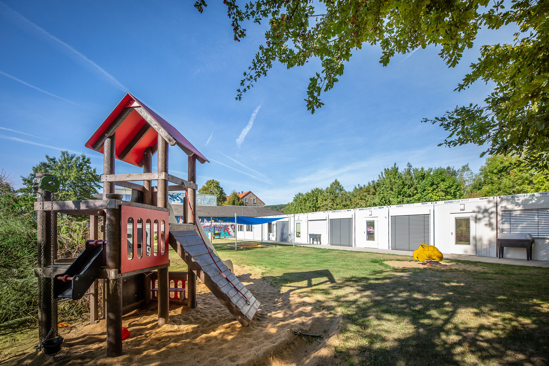 Eine altersgemischte Gruppe ab 1 Jahr bis zur Einschulung sowie eine Gruppe mit Kindern ab 2 Jahren bis zur Einschulung befinden sich in der mobilen Einrichtung. Im Festbau bestehen eine Gruppe mit Kindern ab 3 Jahren und zwei weitere mit Kindern ab 2 Jahren bis zur Einschulung sowie eine Gruppenform mit Inklusion.