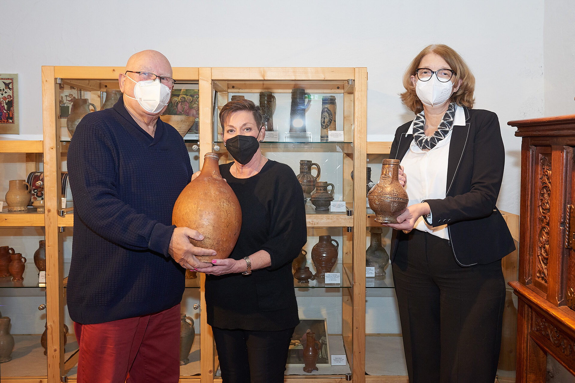 Nun vermachte er dem Museum historische Bartmannkrüge, die aus dem 15. bis 17. Jahrhundert stammen und die Schenkung aus dem Jahr 2019 vervollständigen. Insgesamt überreichten Dietrich Schnell und seine Frau Helga Schnell zehn Werke an das Burgenmuseum. "Wir danken von Herzen für diese Schenkung, die wirklich sehr wertvoll ist - nicht nur aus materieller Sicht, sondern vor allem auch aus historischer", sagt Museumsleiterin Luzia Schlösser.
