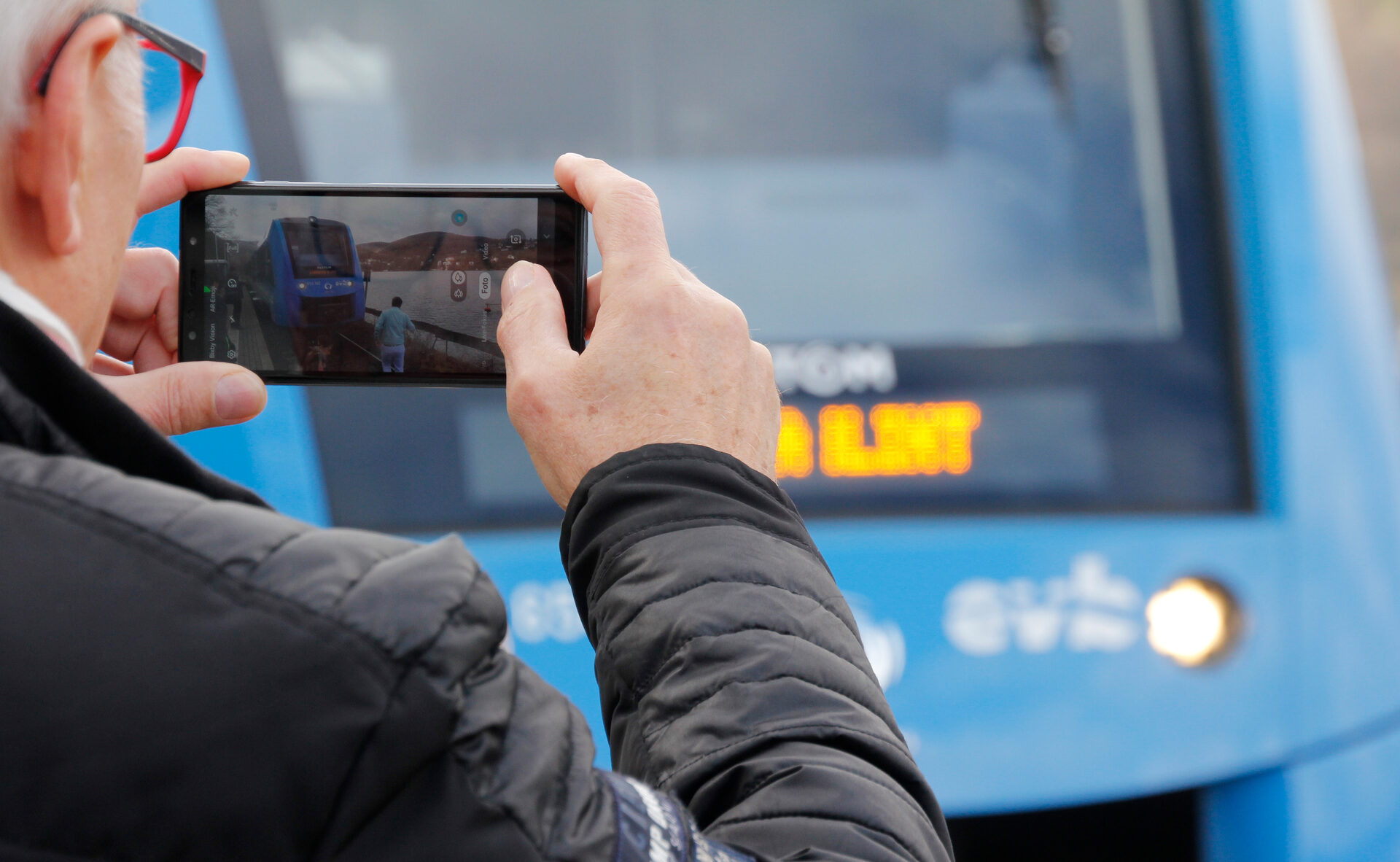 Ein echter Hingucker: Bei der Präsentation des Wasserstoffzuges gab es viel zu fotografieren.