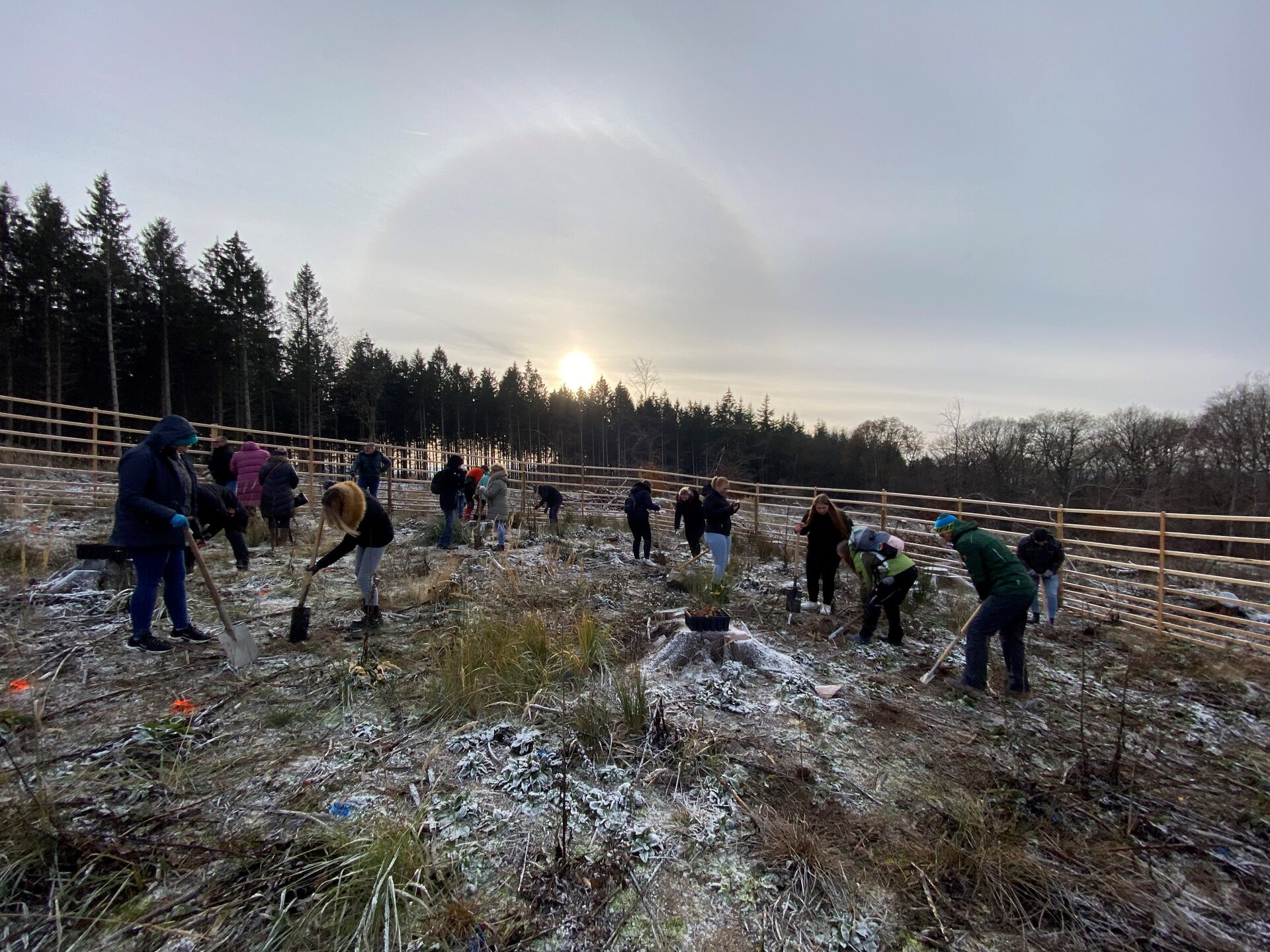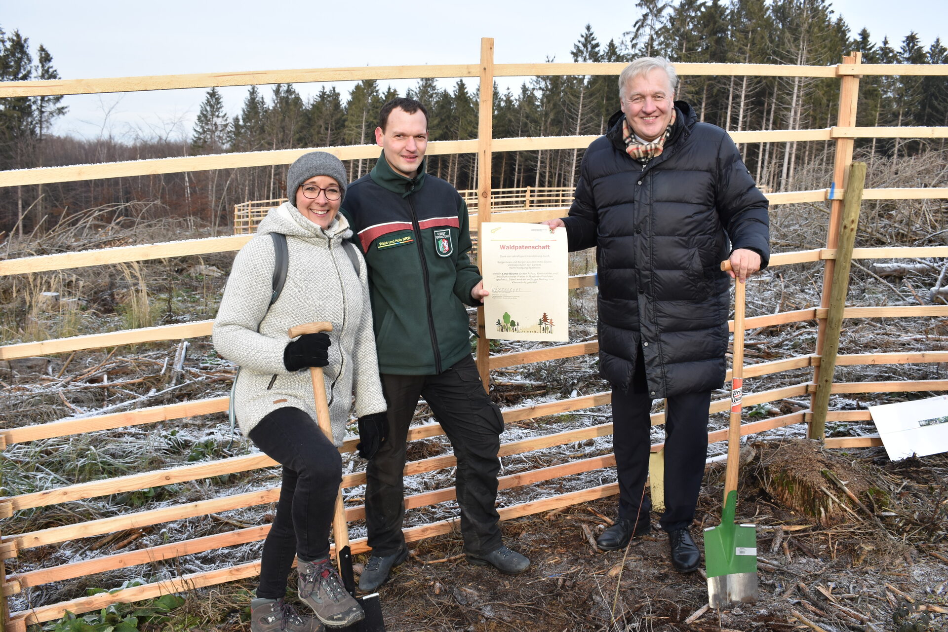 Auch, wenn die frostigen Bedingungen heute nicht einfach waren, so fanden die noch kleinen Stiel-Eichen, Traubeneichen und Esskastanien mit Hilfe der Bürgerinnen und Bürger einen neuen, geschützten Ort, um groß zu werden. "Wir bringen Baumarten ein, auf die wir in Zukunft setzen und die sich gut an den Klimawandel anpassen können. Wir wollen den Wald stärken", sagt Jan-Valentin Wiesmeyer vom Regionalforstamt Rureifel-Jülicher Börde, mit dem das Projekt umgesetzt wird. Die Experten und Expertinnen pflanzen und pflegen die vielen Bäume. Jan-Valentin Wiesmeyer überreichte Landrat Wolfgang Spelthahn die Urkunde für die Waldpatenschaft und die bisher eingepflanzten Bäume. Die Pflanzen stört der kalte Boden übrigens weniger, denn sie befinden sich in einer Art Winterruhe, sind somit geschützt und können dann mit wärmerem Wetter ab dem Frühjahr weiter wachsen.