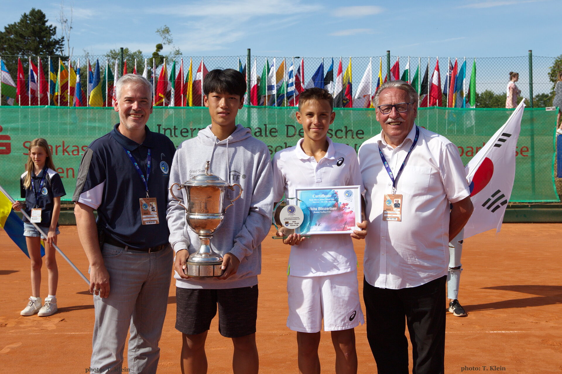 Das Finale der Junioren wurde zwischen dem SüdkoreanerSe Hyuk Cho und dem Ukrainer Nikita Bilozertsev ausgespielt. Cho gilt als einer der begabtesten Nachwuchsspieler in Asien, über seine Altersklasse hinaus. Kürzlich feierte er mit dem Sieg bei den Junioren U14 in Wimbledon den größten Erfolg eines koreanischen Tennisprofis im All England Tennis Club überhaupt. Mit Bilozertsev hatte er einen Gegner auf der anderen Seite, der in dieser Saison bereits fünfmal in einem Endspiel stand, davon zweimal den Titel holte. Bilozertsev musste bis zum Finale nur einen Satz abgeben, Cho gar keinen. Dementsprechend hoch waren die Erwartungen vor der Begegnung. Und die wurden auch erfüllt: Ballwechsel mit über 20 Schlägen, Stopps und Netzangriffe - es war alles dabei. Cho retournierte druckvoll und leiste sich insgesamt weniger Fehler; Durchgang eins ging mit 6:3 an ihn. Im zweiten Satz dann der bessere Start für Bilozertsev. Der Koreaner kämpfte sich aber zurück und beendete die Partie mit einem Break zum 6:4.
