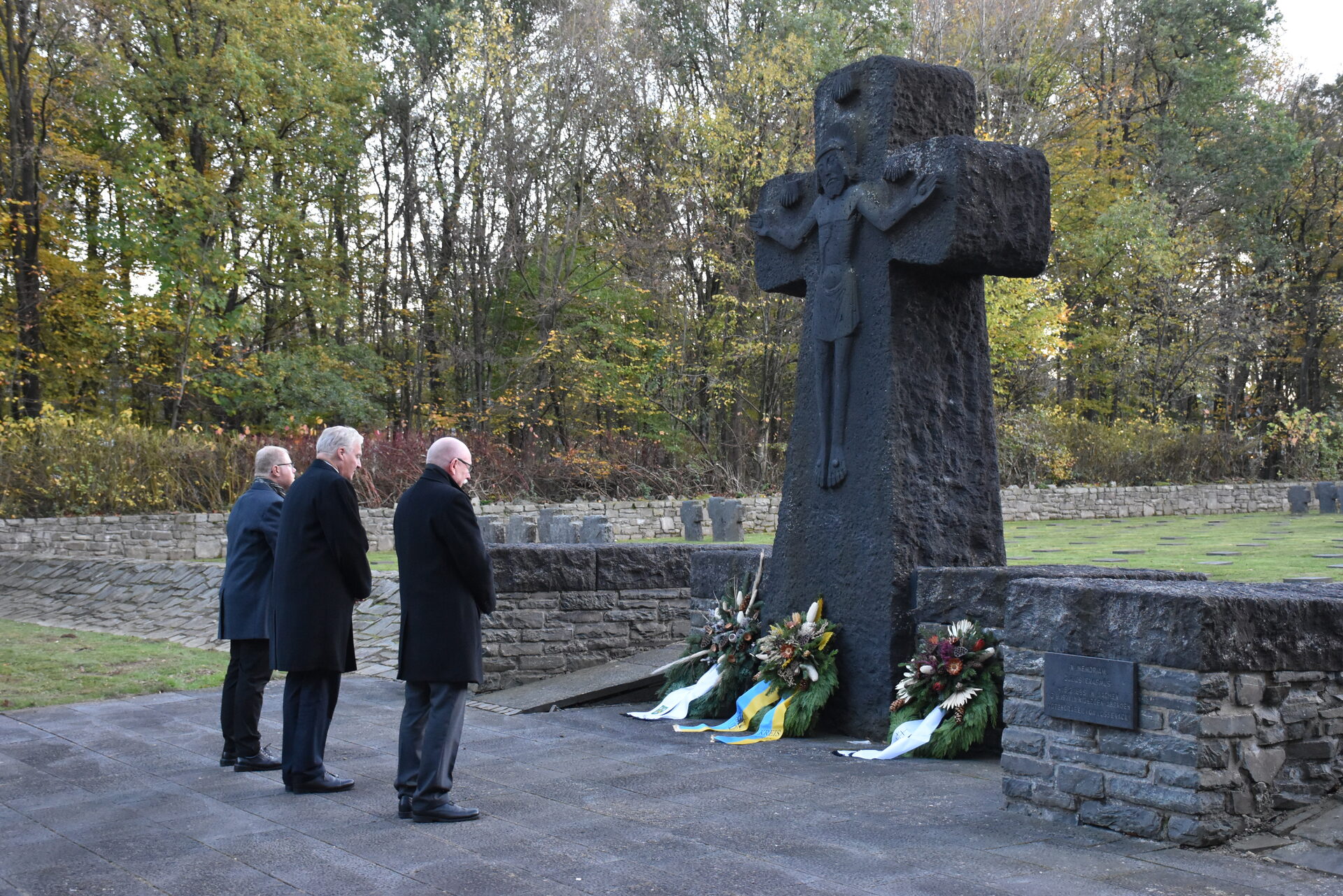 Drei Kränze schmücken nun die Kriegsgräberstätten in Hürtgen und Vossenack. Worte des Gedenkens, Gebete der Hoffnung und mahnende Reden für den Frieden begleiteten die andächtige Veranstaltung an der Kriegsgräberstätte. "Heute ist ein schwieriger Tag", sagte Landrat Wolfgang Spelthahn, der auch Kreisverbandsvorsitzender des Volksbunds ist.