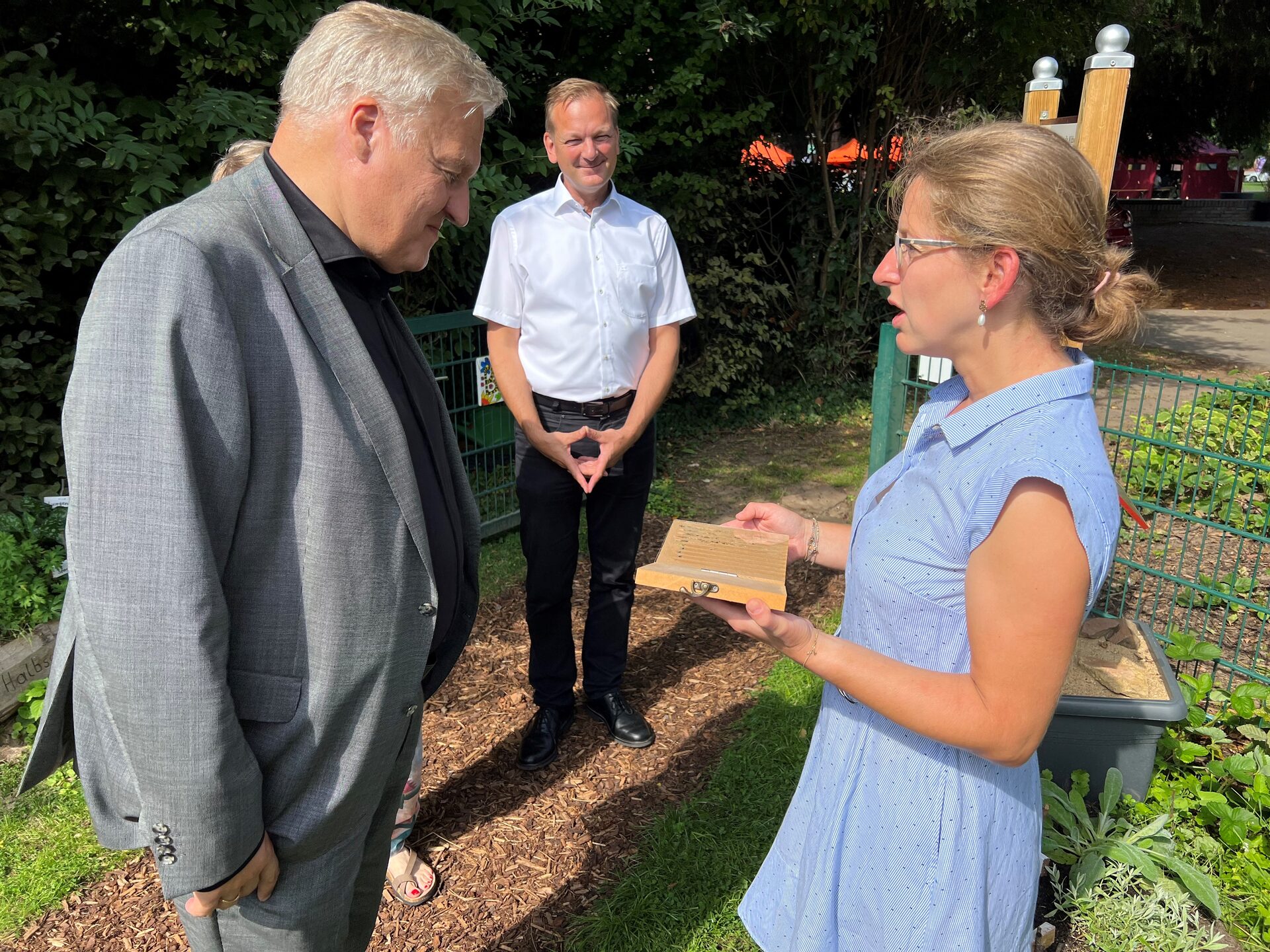 "Das ist ein tolles Projekt", sagte Landrat Wolfgang Spelthahn, als er den Garten besuchte. Der Park an der Schule sei sehr gut geeignet für ein solches Projekt, so der Landrat.