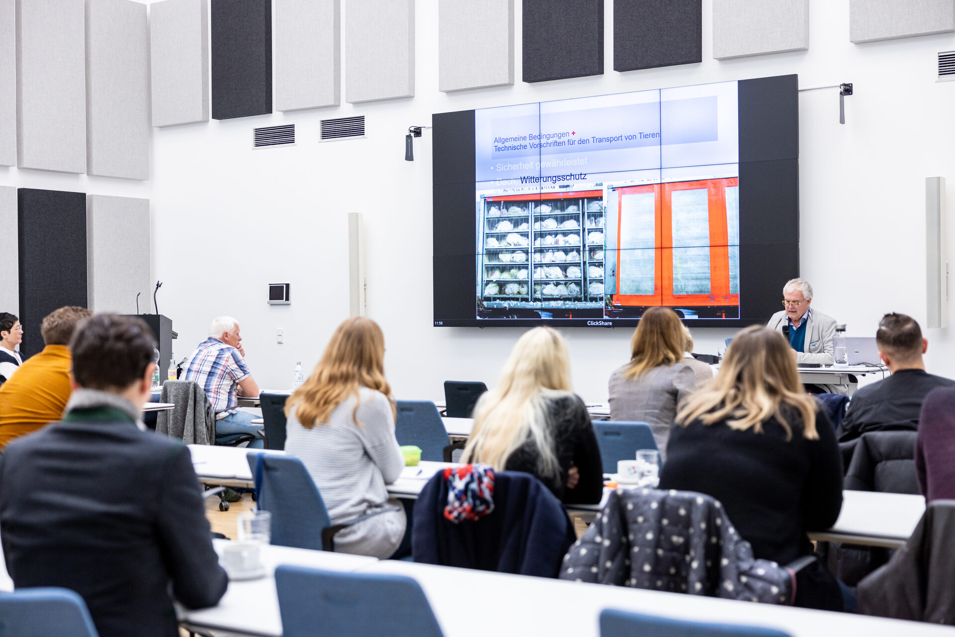 Neben theoretischen Inhalten wie beispielsweise zu aktuellen Rechtslagen zum Transport von Nutz- und Haustieren, die vom Referenten Dr. Alexander Rabitsch vermittelt wurden, konnten die rund 30 Teilnehmenden auch praktische Erfahrungen sammeln. Zu den Gästen zählte auch die Landestierschutzbeauftragte Dr. Gerlinde von Dehn.