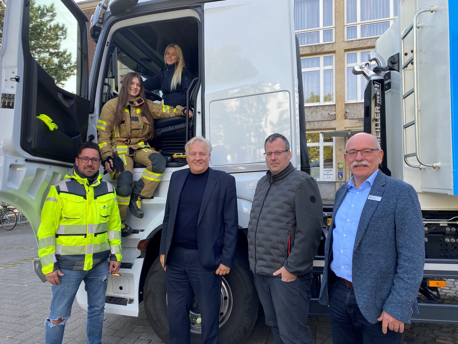 Landrat Wolfgang Spelthahn freut sich, dass der Rettungsdienst so viel Aufmerksamkeit bekommt. "Ohne unsere Einsatzkräfte wären wir verloren", sagt er. Der Kreis Düren legt auch im Rettungsdienst Wert auf klimafreundliche Antriebe. Der nächste Schritt ist es, einen mit Wasserstoff (H2) betriebenen Rettungswagen anzuschaffen. Ein H2-Kommandowagen ist bereits im Einsatz. Dabei handelt es sich um ein Auto, dass die Einsatzleiterinnen und -leiter zur Anfahrt sowie zur Erkundung von Einsatzstellen nutzen. Die Jülicher Maxis-Gruppe unter der Leitung von Maximilian Jankowski, der auch eine Fahrschule speziell für das Rettungswesen betreibt, hat den Wagen umgebaut und unterstützt die Wasserstoff-Offensive des Kreises Düren.