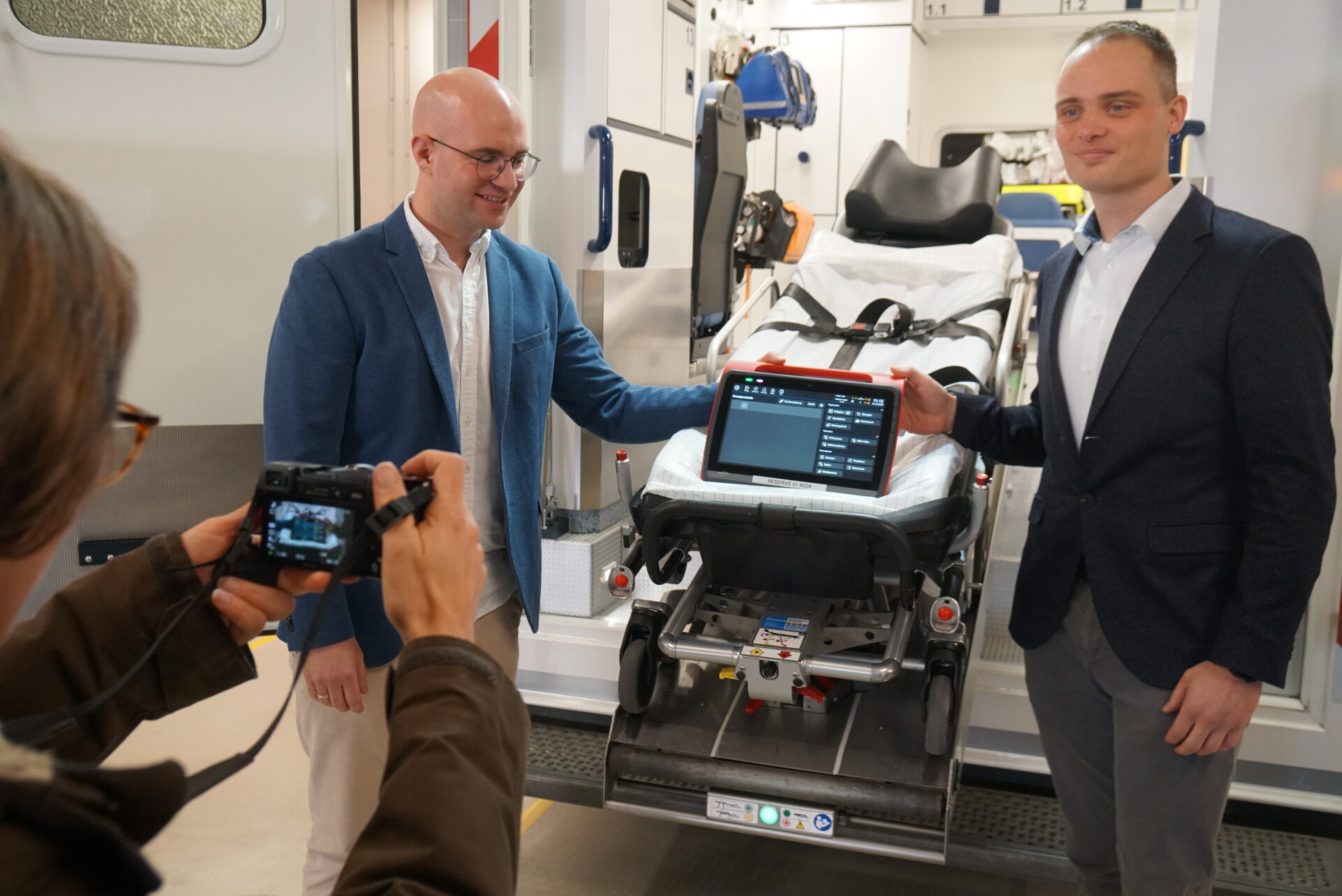 Sobald der Notruf eintrifft, werden die ersten Daten erfasst. Diese können auch von den Rettungskräften sowie den Notärzten per Tablet abgerufen werden. Vor Ort, beispielsweise an der Unfallstelle, können dann weitere Daten wie Verletzungen eingetragen, EKG erfasst sowie die persönlichen Daten der Patienten vermerkt werden. Schlüssel dieser Neuentwicklung ist das NIDApad – ein Internetfähiges Tablet, das unter anderem mit Kamera und Kartenlesegerät ausgestattet ist. Hier werden die Daten ergänzt und den Krankenhäusern von unterwegs übermittelt. Alle Kliniken im Kreis Düren und die Rettungsdienst Kreis Düren AöR (Anstalt des öffentlichen Rechts/RDKD) sind an das System angeschlossen: Das Krankenhaus Jülich, das St. Marien-Hospital Birkesdorf, Krankenhaus Düren und St. Augustinus-Krankenhaus Lendersdorf. Auch die LVR-Klinik Düren ist involviert. Außerhalb des Kreises nutzen zudem die Uniklinik Aachen und das Kreiskrankenhaus Mechernich dieses System. "Bisher mussten diese wichtigen Daten nochmal im Krankenhaus abgefragt, dann in neue Formulare eingetragen, eingescannt und an interne Systeme überspielt werden. Jetzt können die Daten, die am Einsatzort aufgenommen wurden, direkt an das Ziel-Krankenhaus übermittelt werden", sagt Dr. Norbert Hambach, stellvertretender ärztlicher Leiter Rettungsdienst Kreis Düren sowie stellvertretender Leiter der Notaufnahme Lendersdorf.
